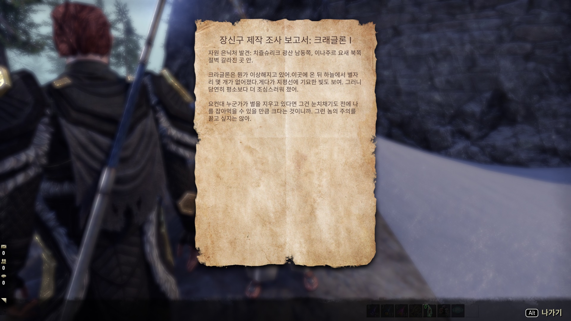 게임창고/엘더스크롤 시리즈 엘더스크롤 온라인, Jewelry Crafting Survey : Craglorn I (크래글론) by 귀여운앙꼬 2024. 12. 19. 반응형 산의 고지대 여행자의 성소(Mountain Overlook Wayshrine) 동쪽 절벽 구석진 곳에서 찾을 수 있다. 반응형 공유하기 게시글 관리 앙꼬의 작업실