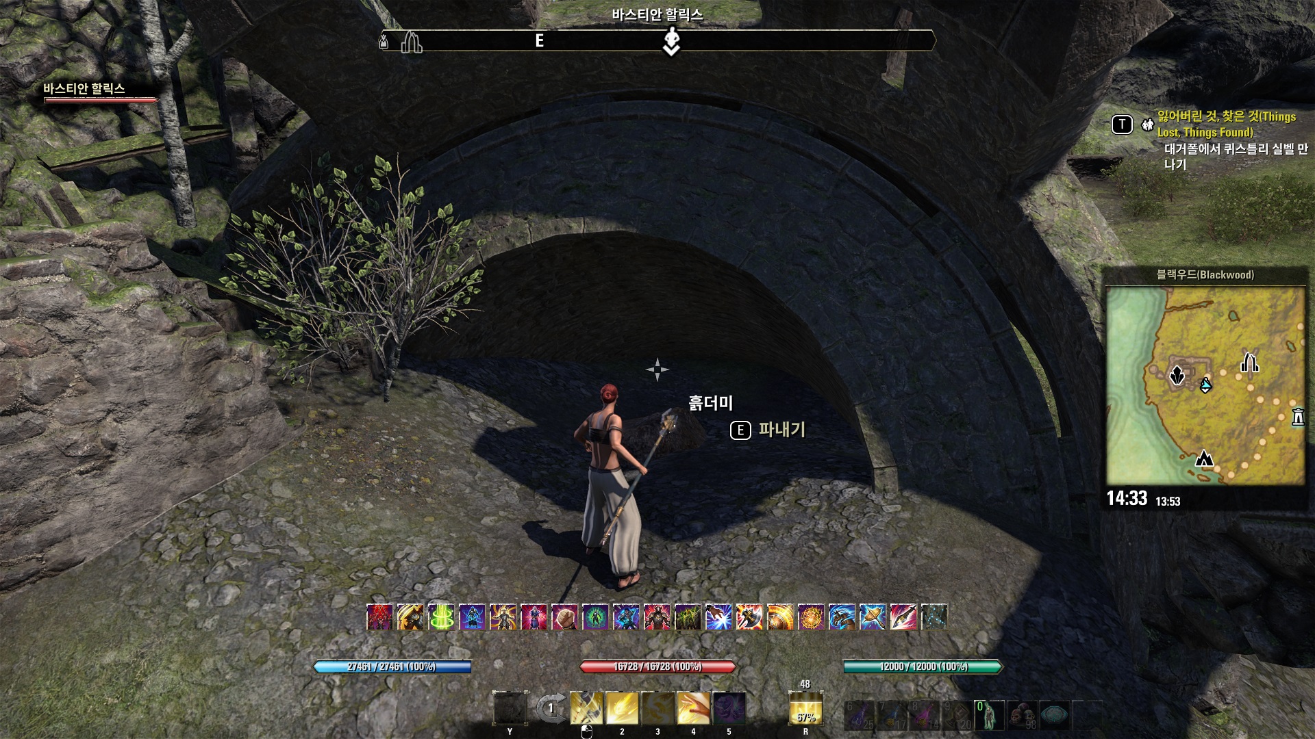 게임창고/엘더스크롤 시리즈 엘더스크롤 온라인, Blackwood Treasure Map I (블랙우드) by 귀여운앙꼬 2025. 1. 3. 반응형 레이야윈(Leyawiin) 남동쪽 해안가에 위치한 폐허가 된 요새의 외부 동남쪽 모서리 부분에 가면 무너진 성루가 있는데, 그 안쪽에서 찾을 수 있다. 반응형 공유하기 게시글 관리 앙꼬의 작업실