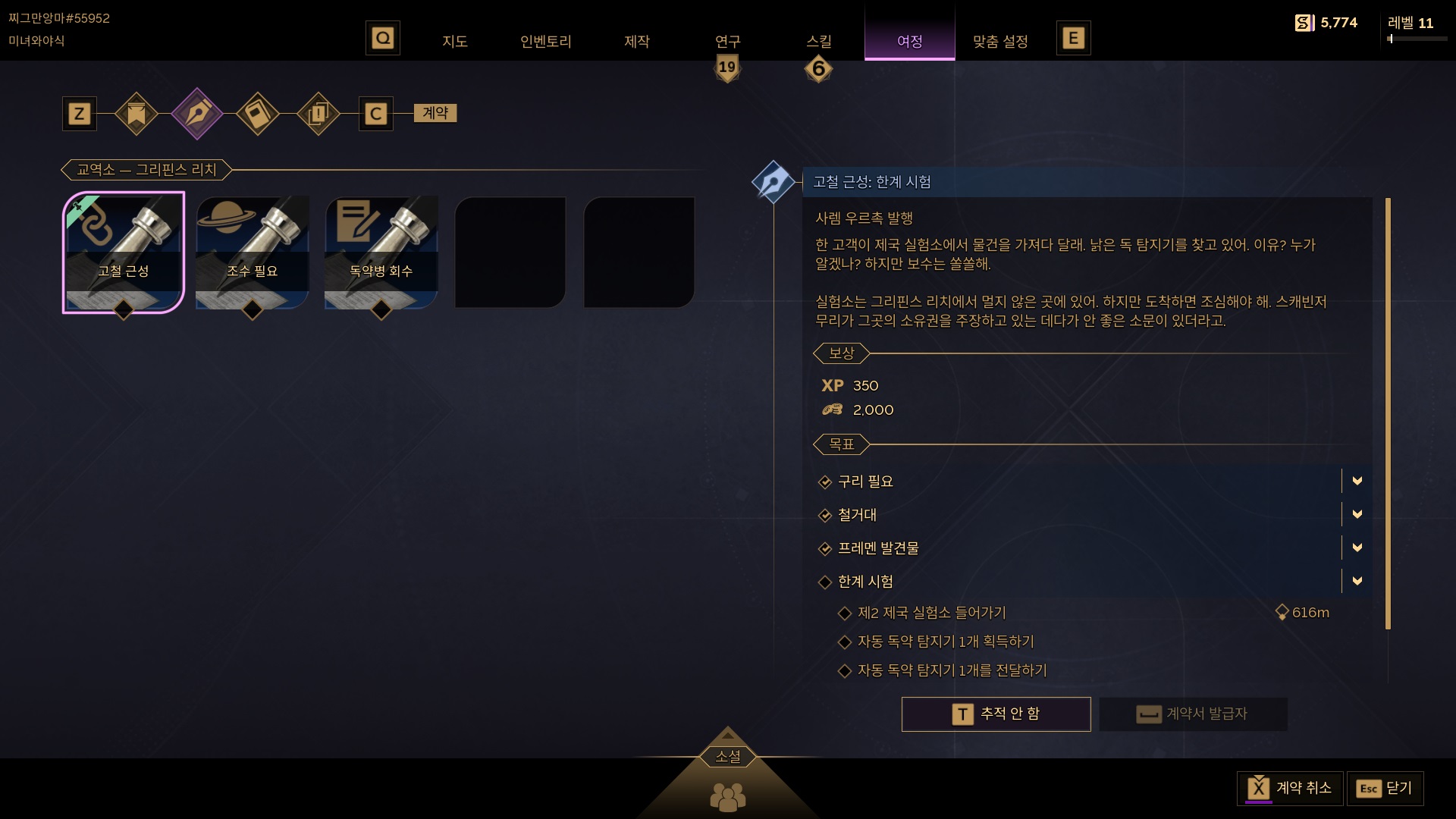 목적지는 제 2 제국 실험소다. 여기에 연계된 계약이 2개나 더 있다. 독양병 회수 : 개봉금지, 조수 필요->행성학자 : 기본, 그러니 해당 계약을 다 받고 가는 것이 좋다.