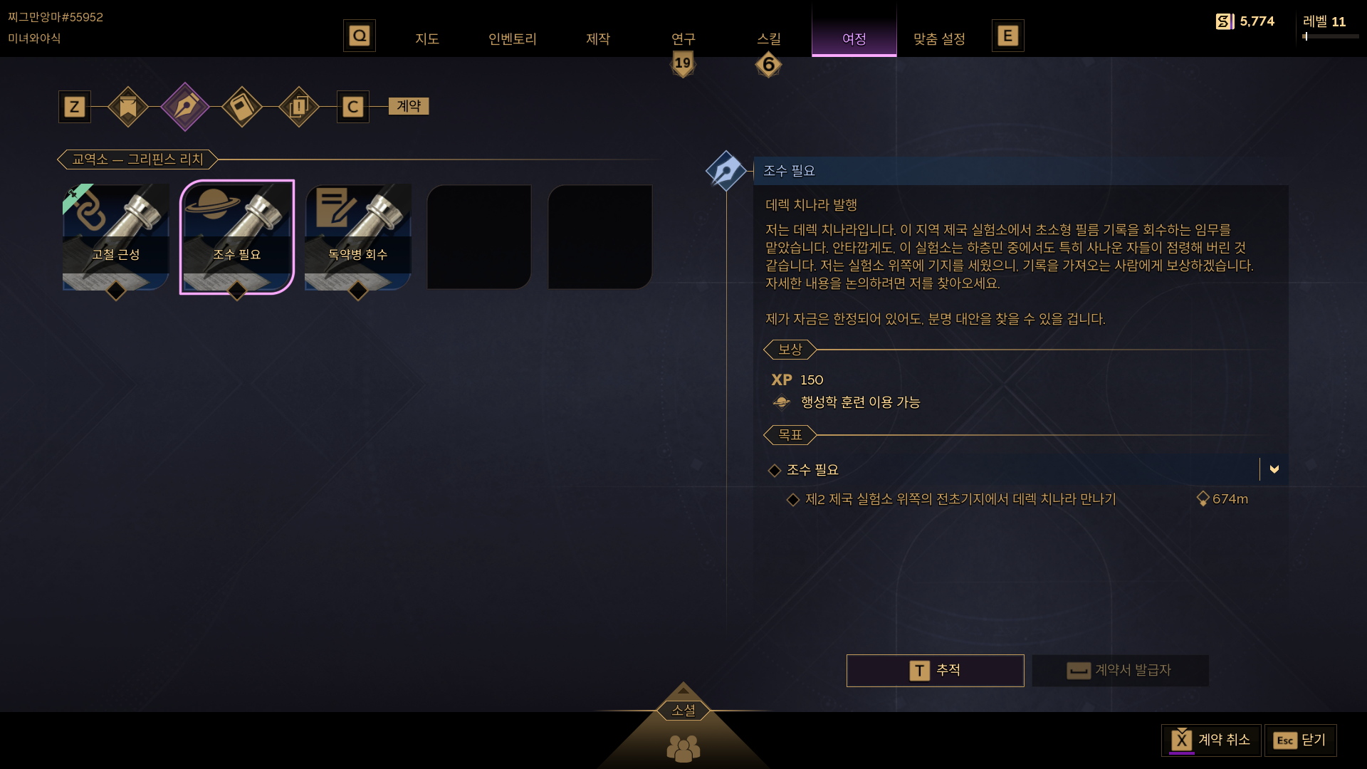 데렉 치나리를 발견 할 수 있다. 그러면 계약이 완료된다. '행성학 : 기본 : 초소형 필름 회수'로 이어진다.