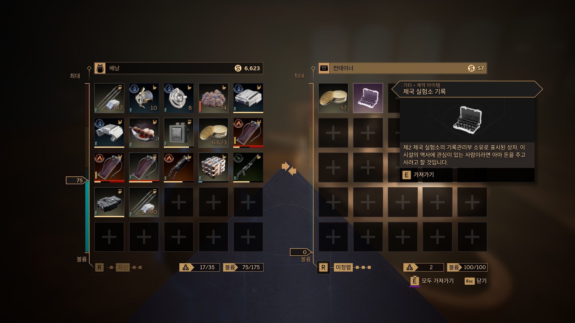 중앙 책상위에 놓은 상자에서 제국 실험소 기록을 챙기자.