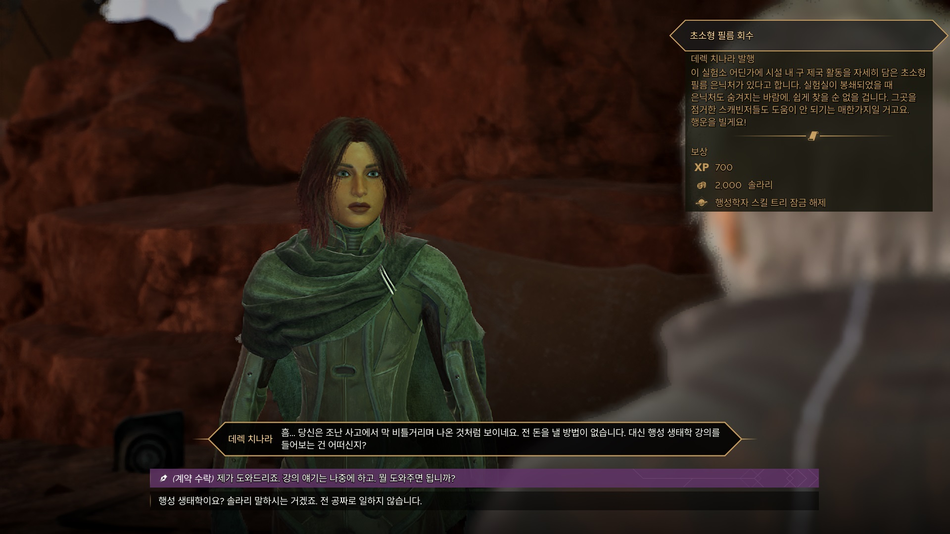 데렉 치나리와 대화 후 당신에게 배우고 싶다고 하면 행성학 기본을 배우기 위한 계약을 받을 수 있게 된다.