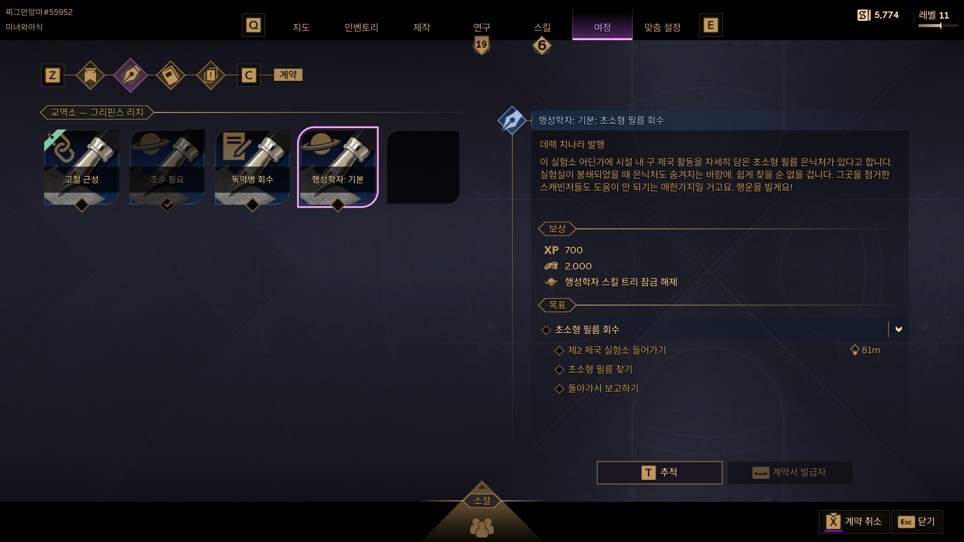 데렉 치나리에게 돌아가서 제국 실험소 기록을 건네주면 계약이 완료되고 행성학 스킬이 해제된다.