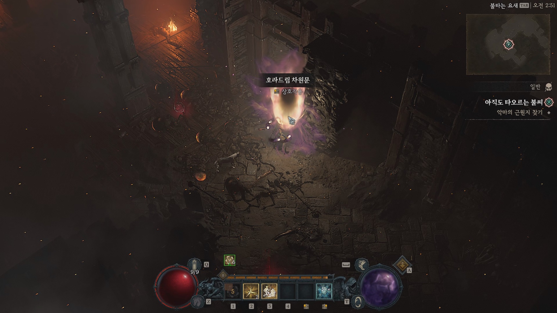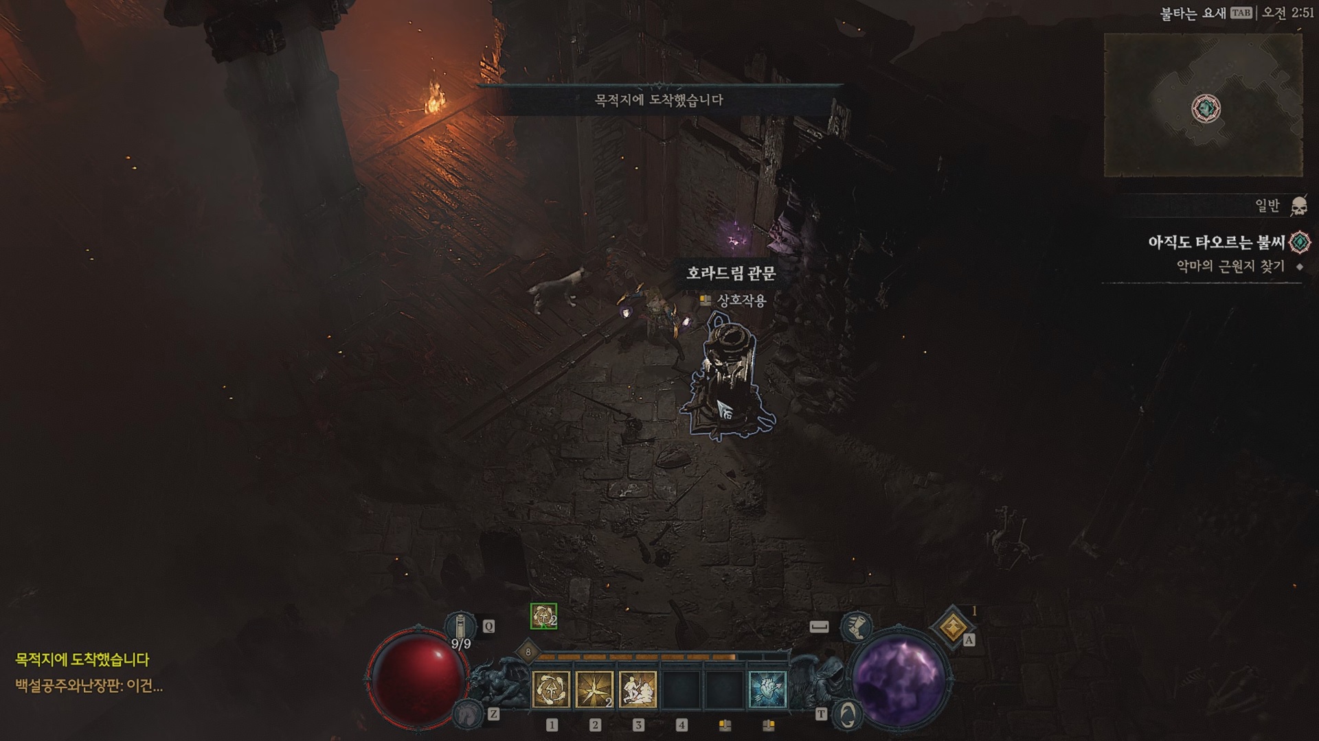 악마의 자취방(?)에 들어가면 뭔가 이상한 것이 어디로 가라고 자꾸 가리킨다. 해당 위치에 가면 호라드림 관문이 나오고 클릭하면 악마가 쏟아져 나온다.