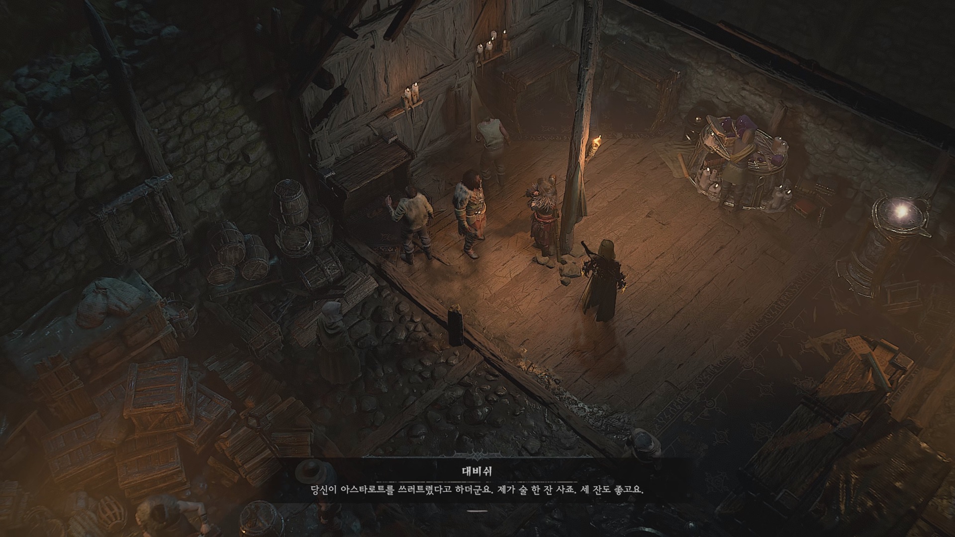 세리가의 브리오나와 대화를 하자. 친구 대비쉬가 한 잔 해~ 세 잔 해~
