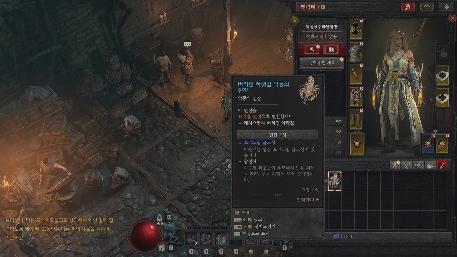 호라드림 관문(차원문)은 악몽 던전에서 나오기에 악몽의 인장을 미리 지급한다. 사용해서 악몽 던전으로 들어가자.