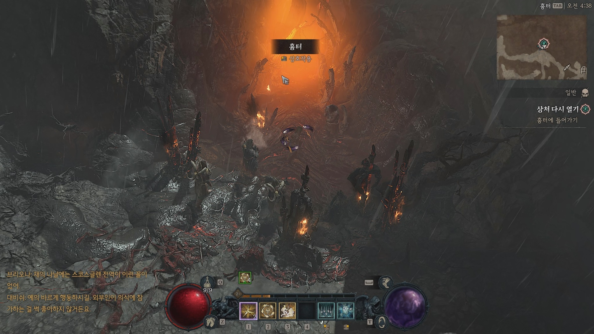흉터 앞 대비쉬와 대화 후 흉터로 들어가자.