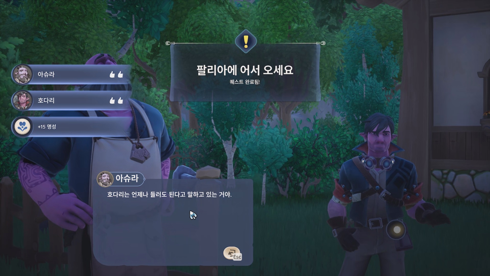 만든 가구를 대충 배치하고 아슈라, 호다리에게 돌아가서 대화를 하면 퀘스트가 완료된다.