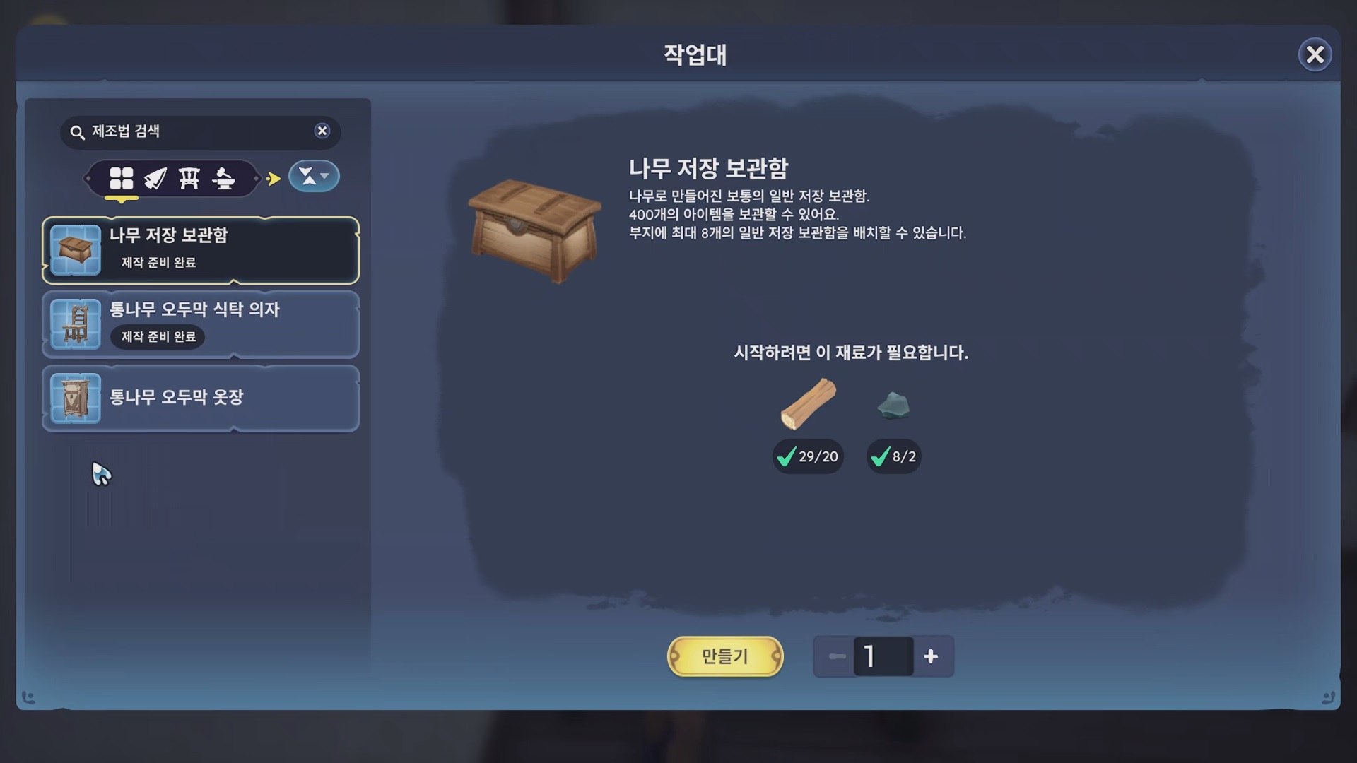 처음 가구를 만들고 나면 다른 가구 레시피를 선택 할 수 있다. 이게 계속 되는가 모르겠다.