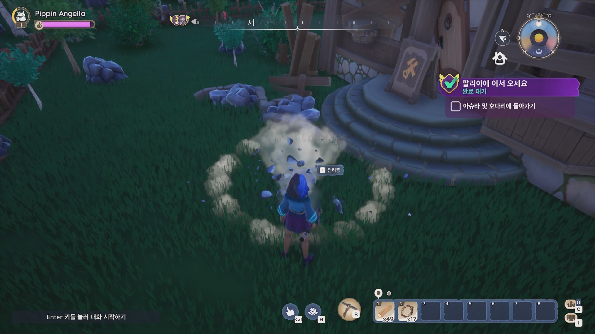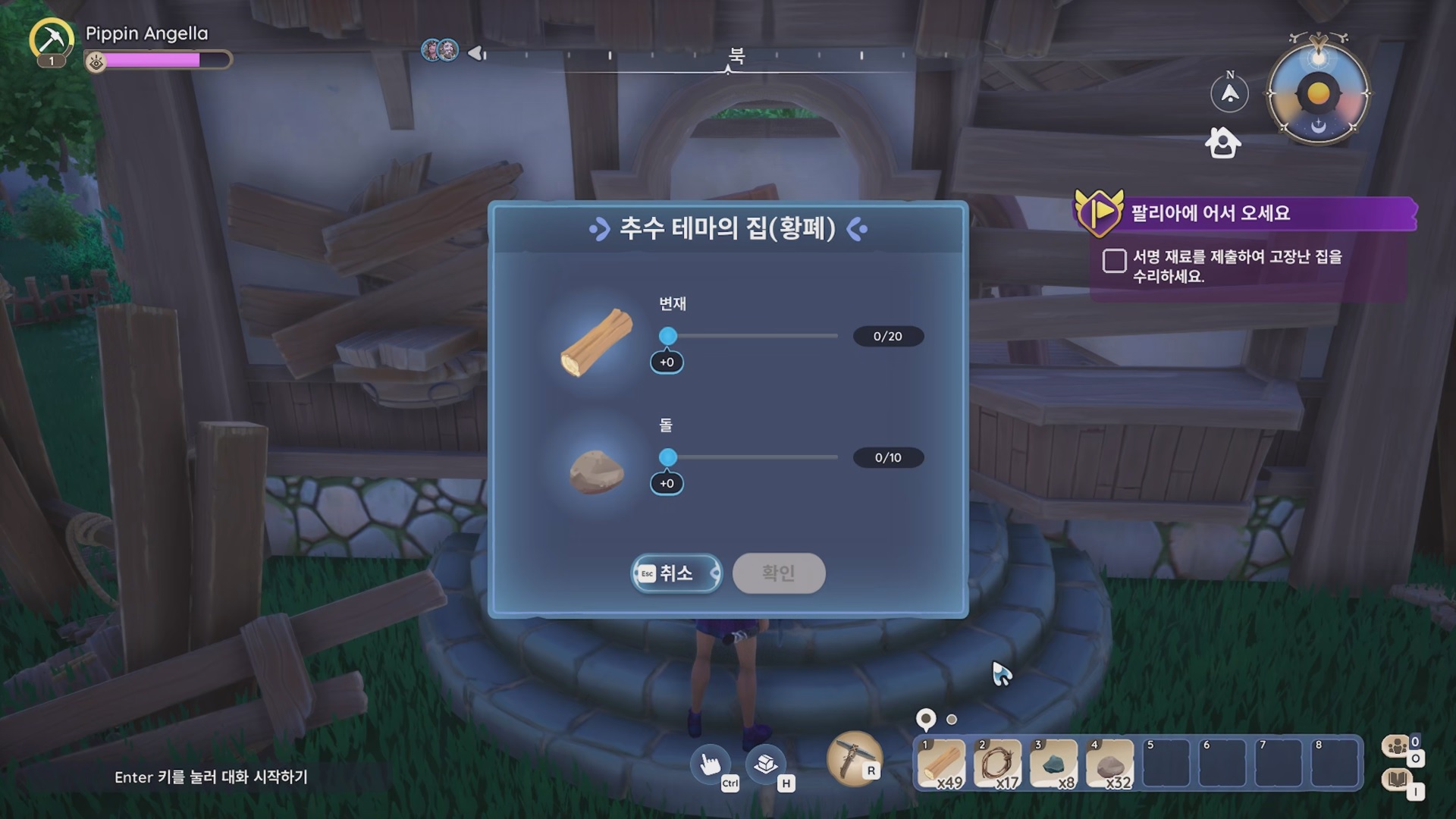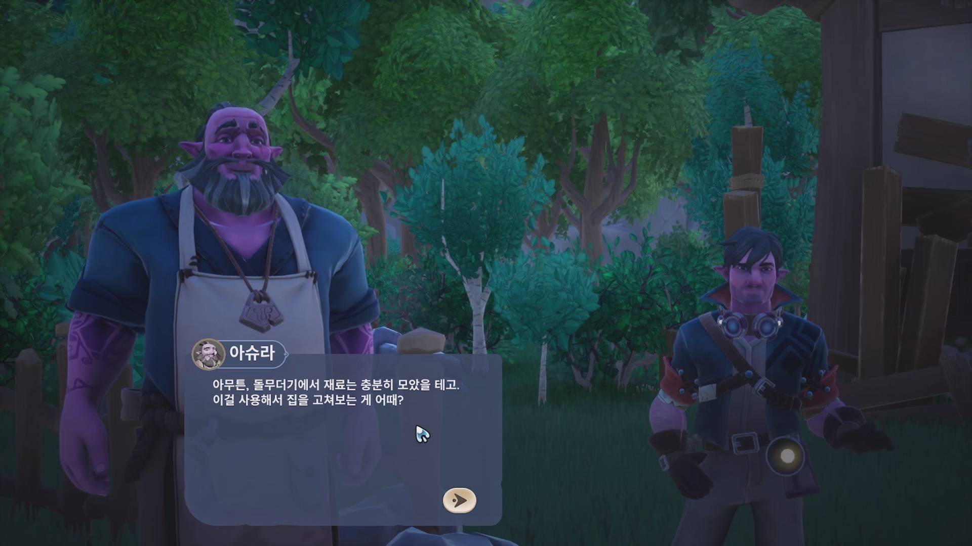 잔해를 치우고 아슈라와 호다리와 대화 하면 집을 고쳐 보란다. 그래야지, 내가 살 집인데...