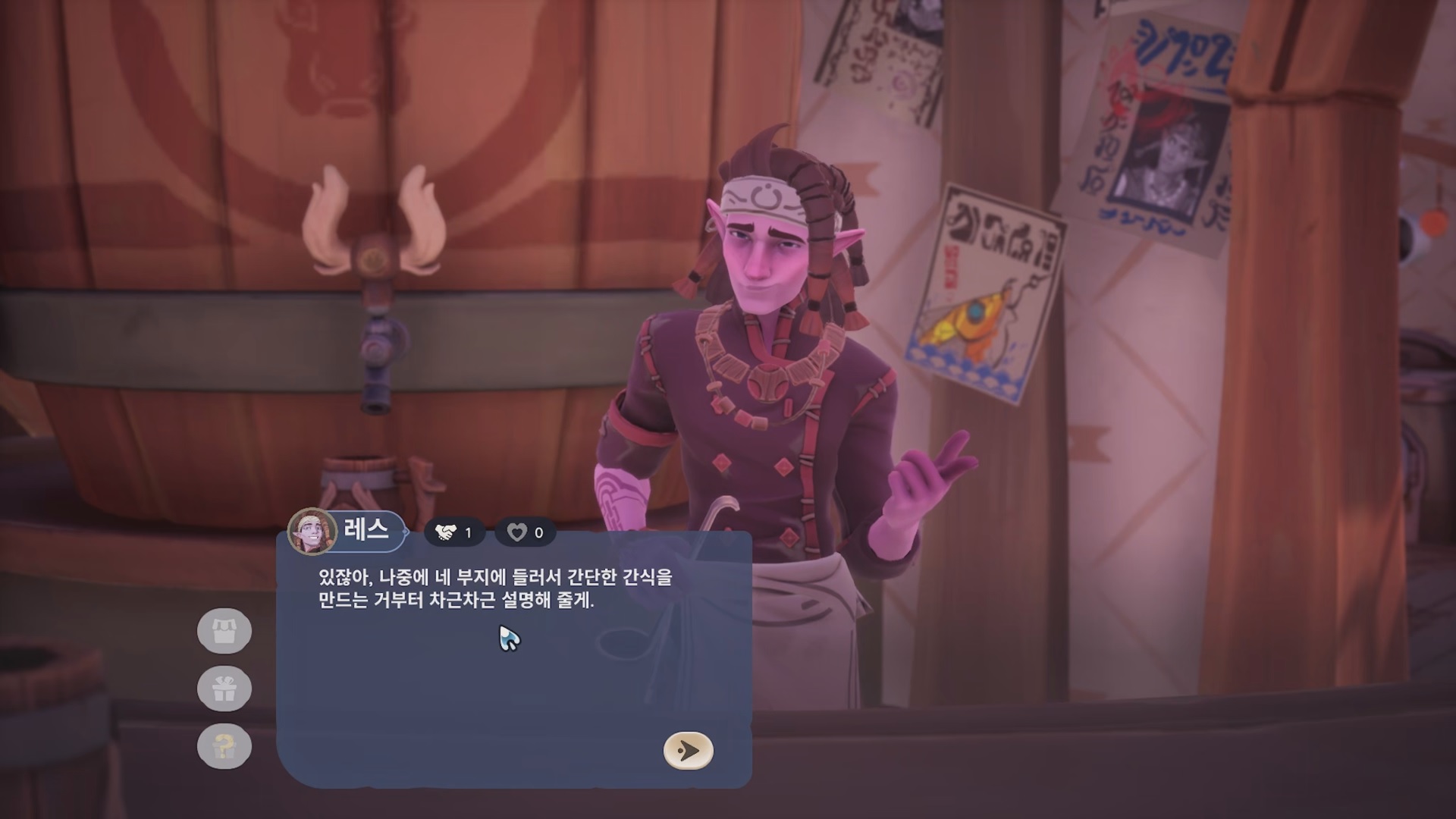 레스에게 말을 걸면 부지에서 간단한 간식 만드는걸 알려준다고 한다.