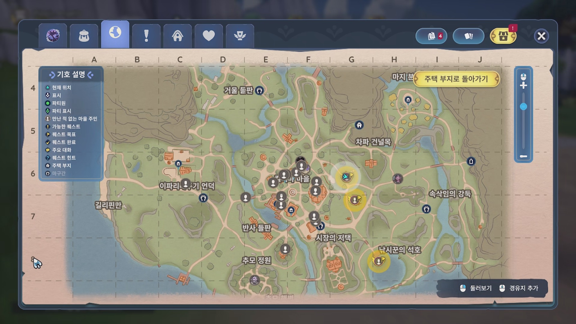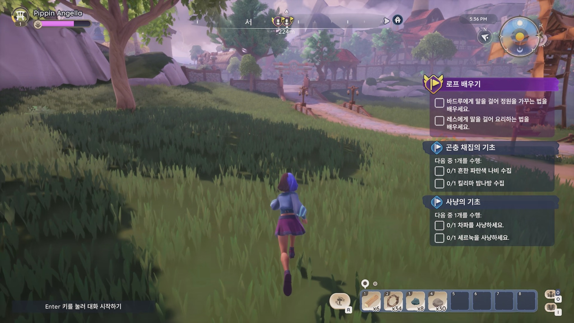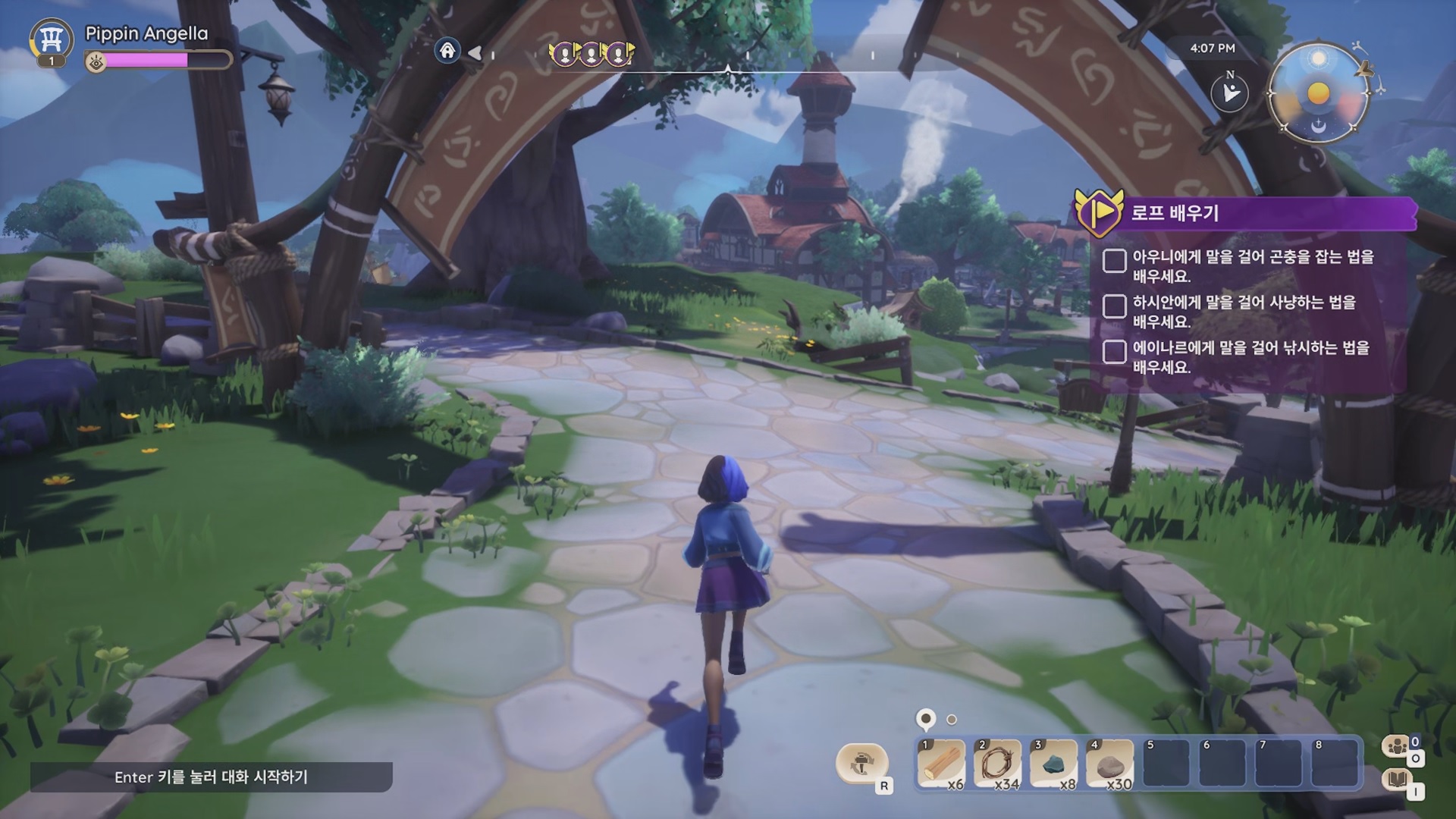 부지를 떠나 마을로 가서 아우니에게는 곤출 채집 방법을, 하시안에게는 사냥법을, 에이나르에게는 낚시하는 방법에 대해 알아보자.