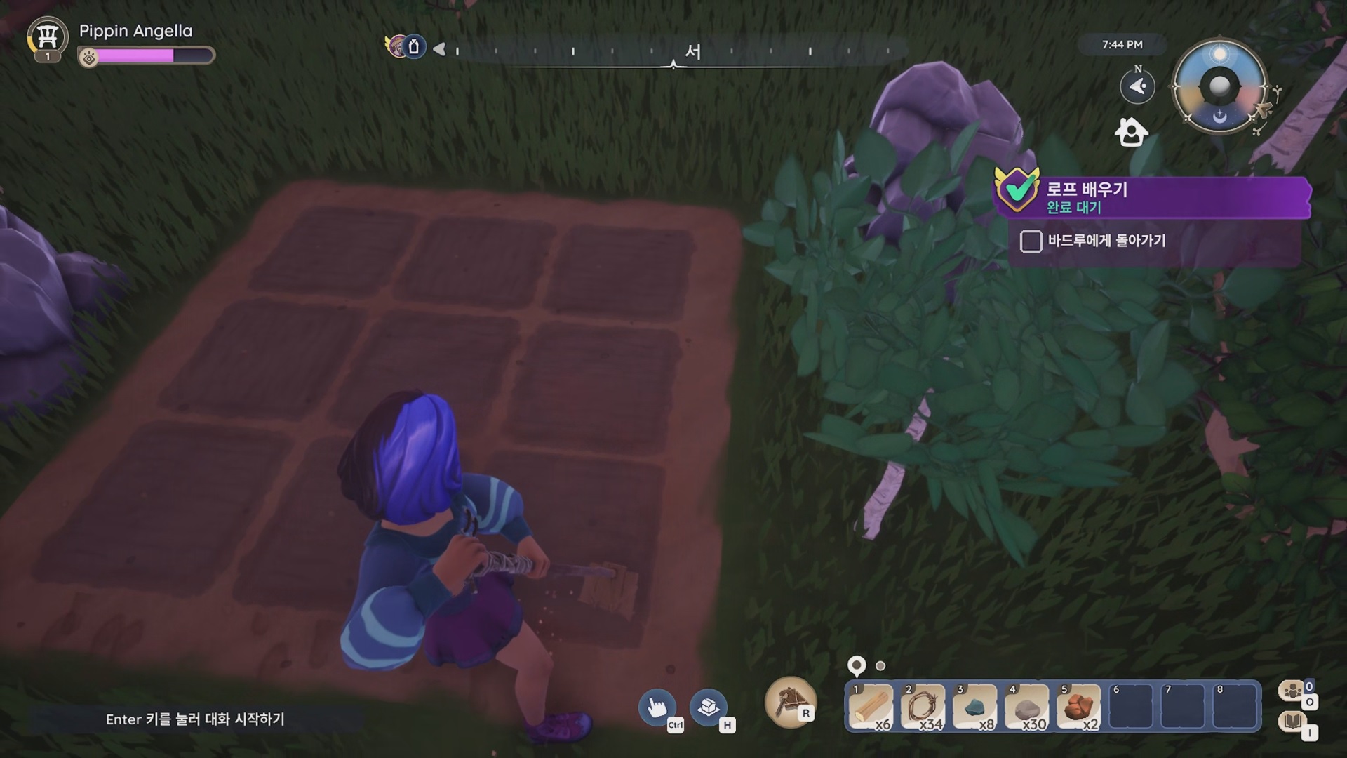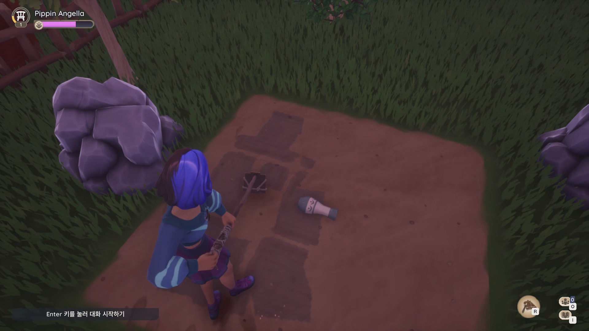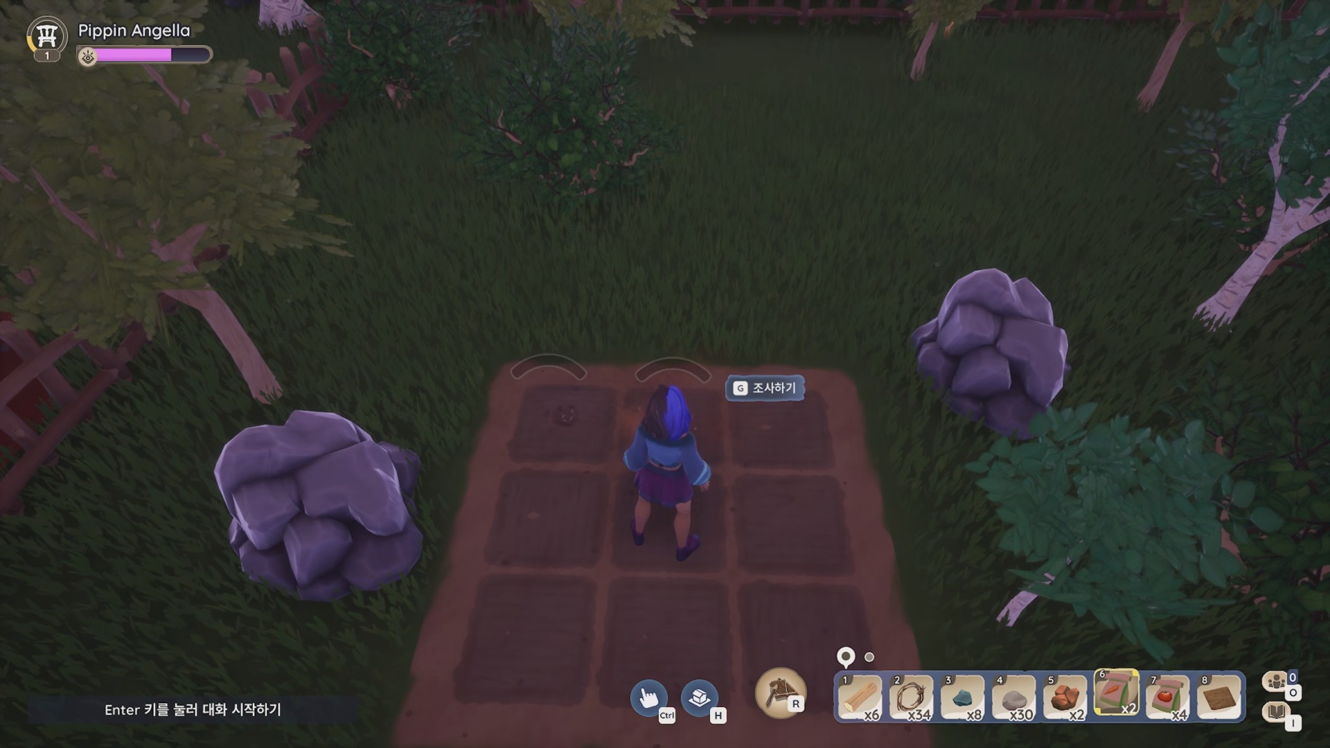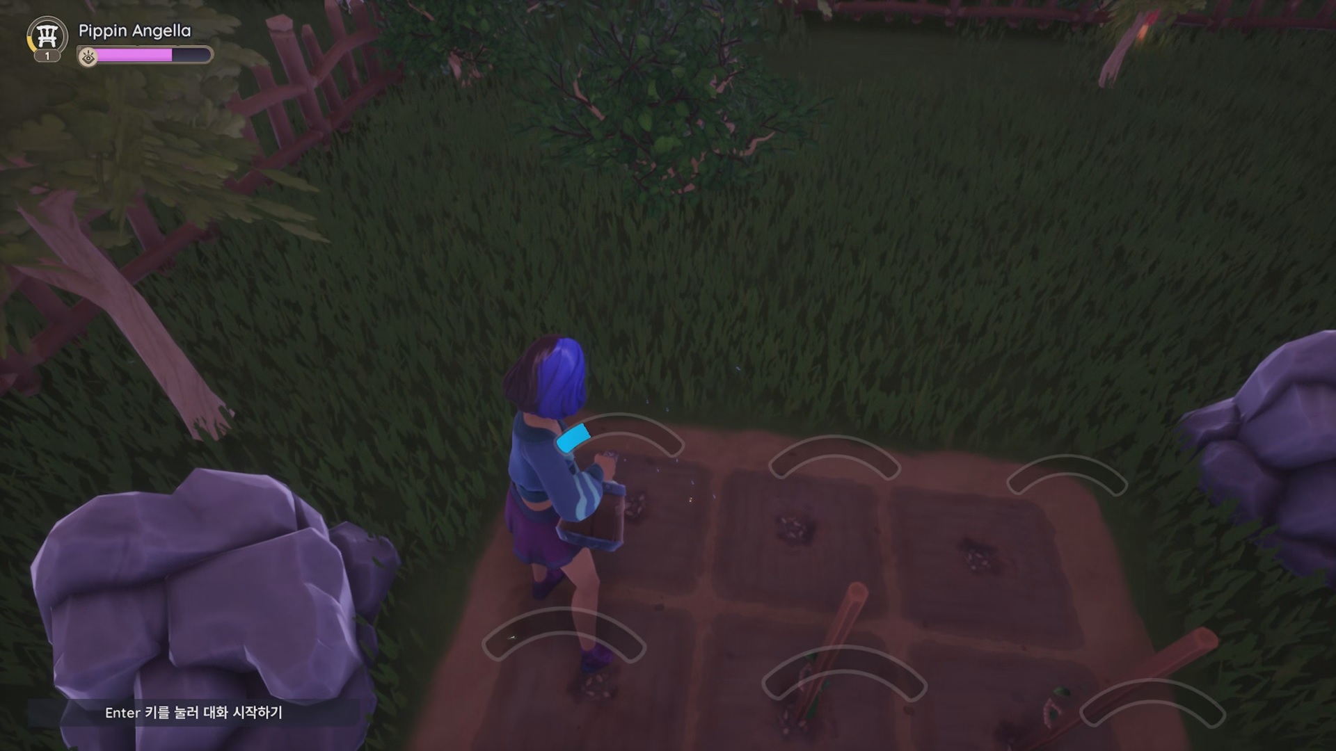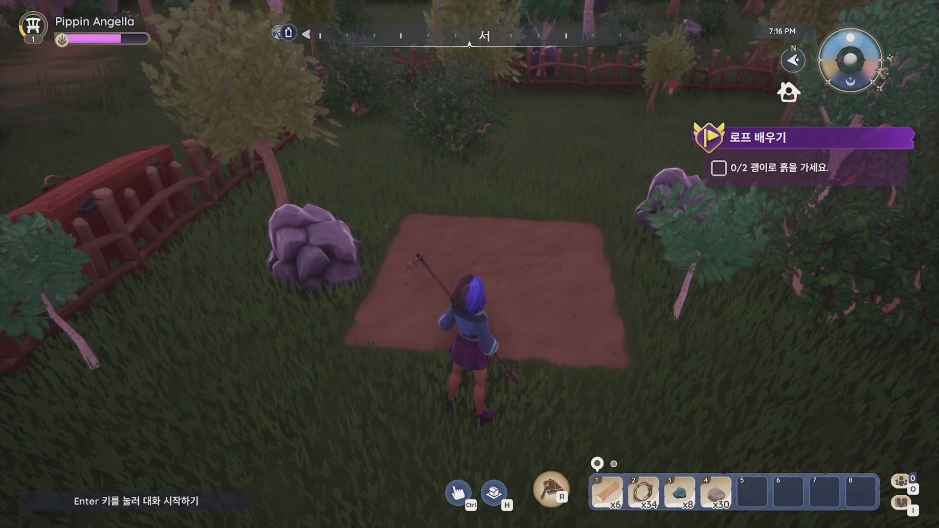 임시 괭이를 장착 후 배치된 땅을 골라내 작물을 심을 수 있게 해야 한다.
