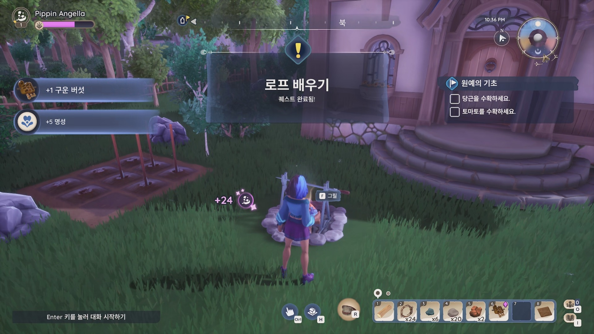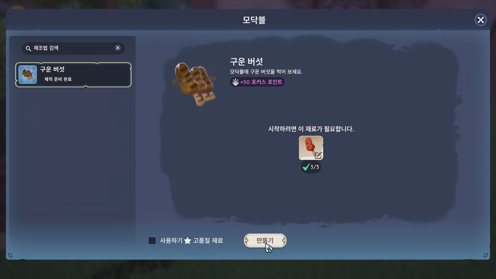 버섯을 다 굽게 되면 퀘스트 완료!