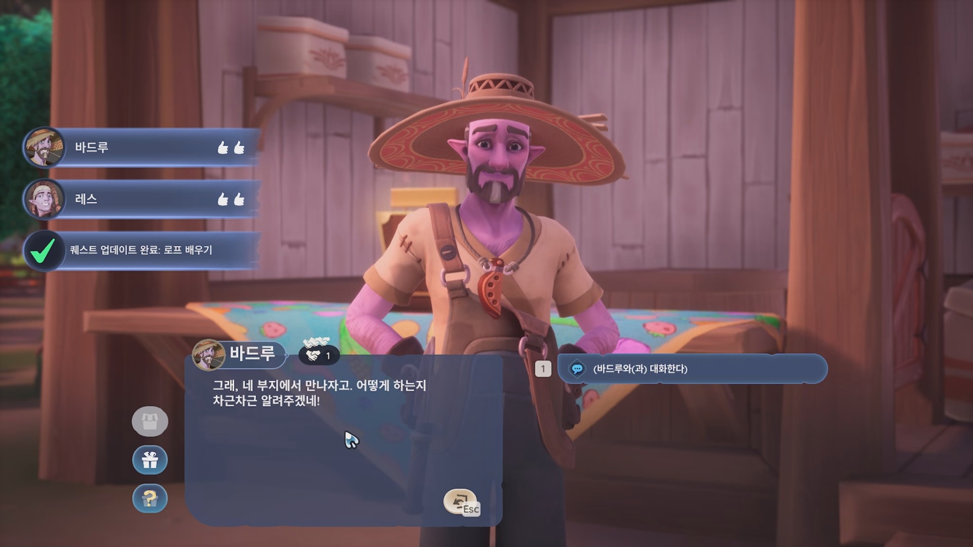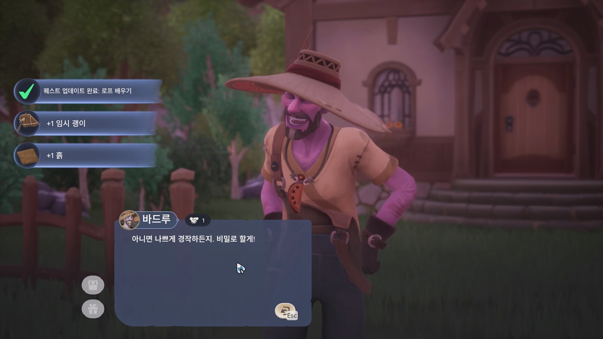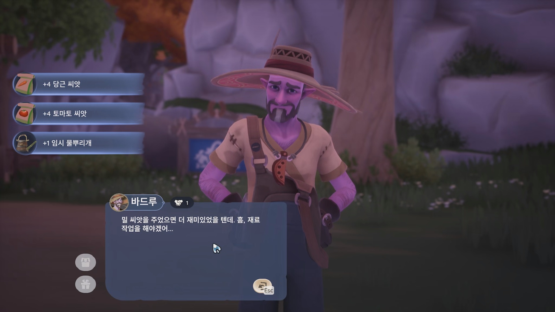 바드루와 대화 하면 당근 씨앗 4개, 토마토 씨앗 4개, 임시 물뿌리개를 준다.