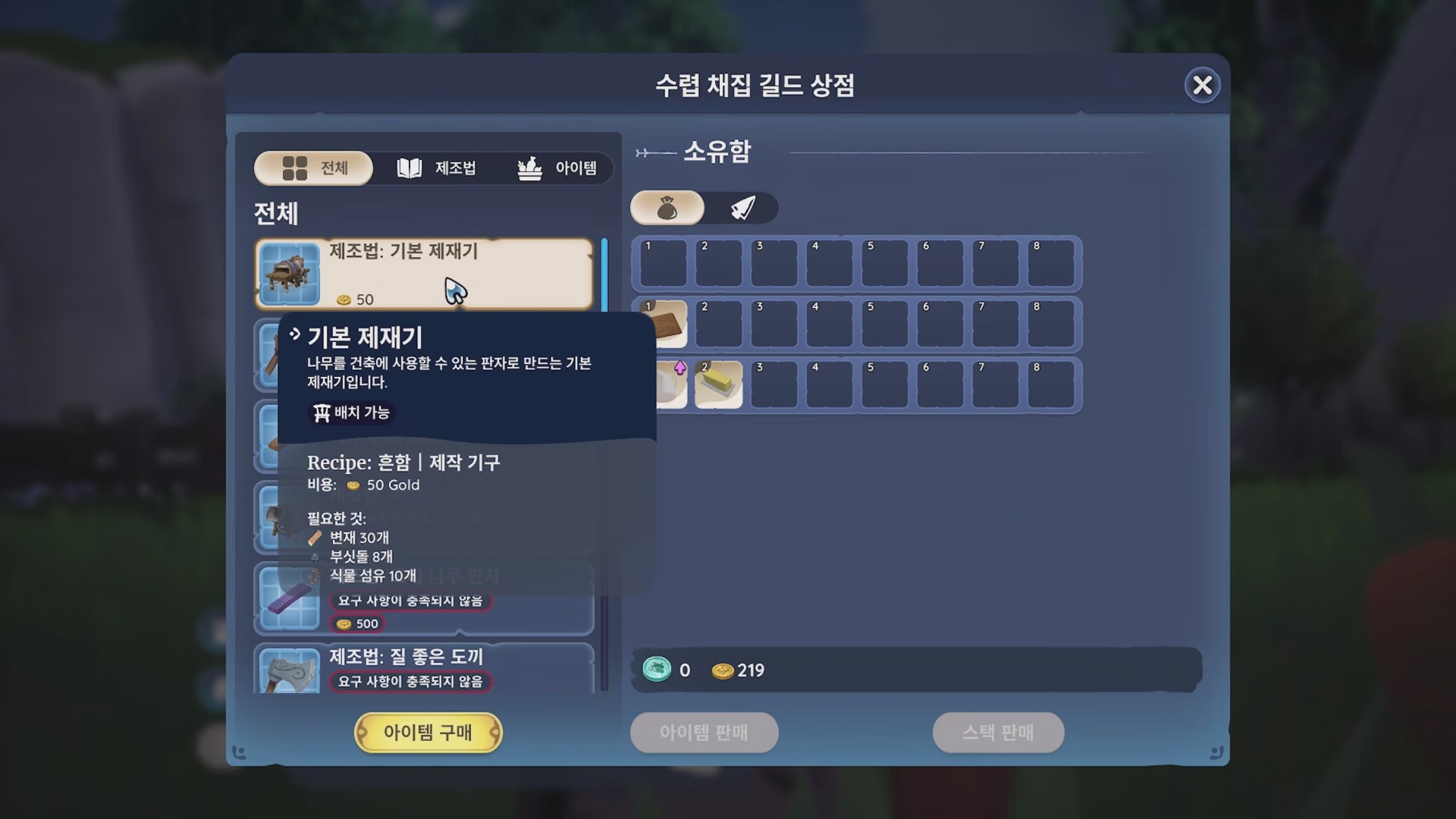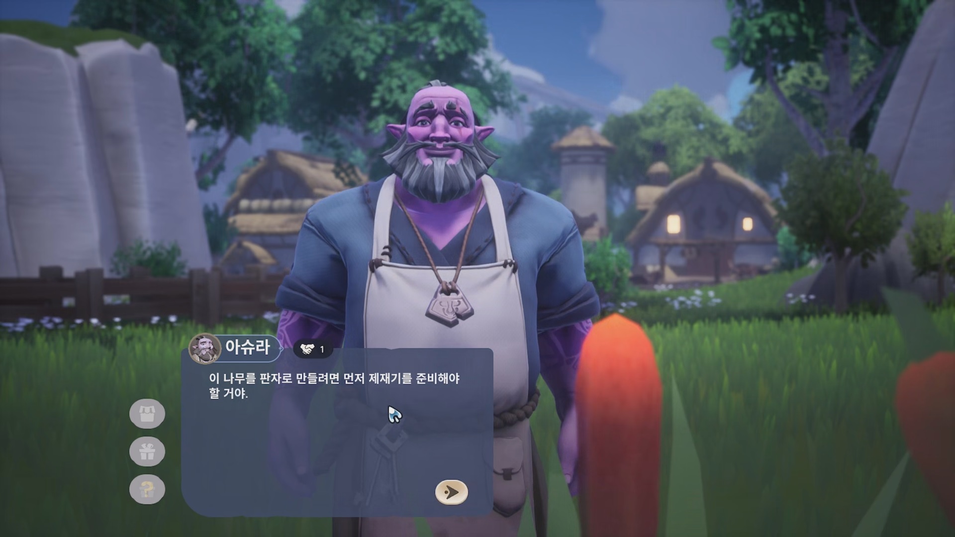 변재 판자를 만들기 위해 아슈라에게 '제조법: 기본 제재기'를 구입하자.