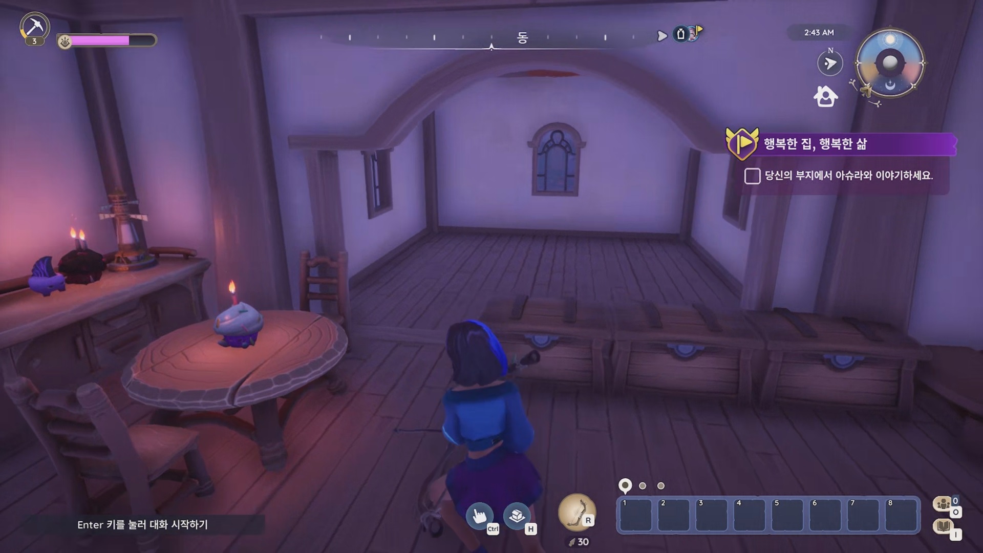부지로 찾아온 아슈라와 대화하면 벽판, 석조 바닥을 주면서 퀘스트가 완료된다.